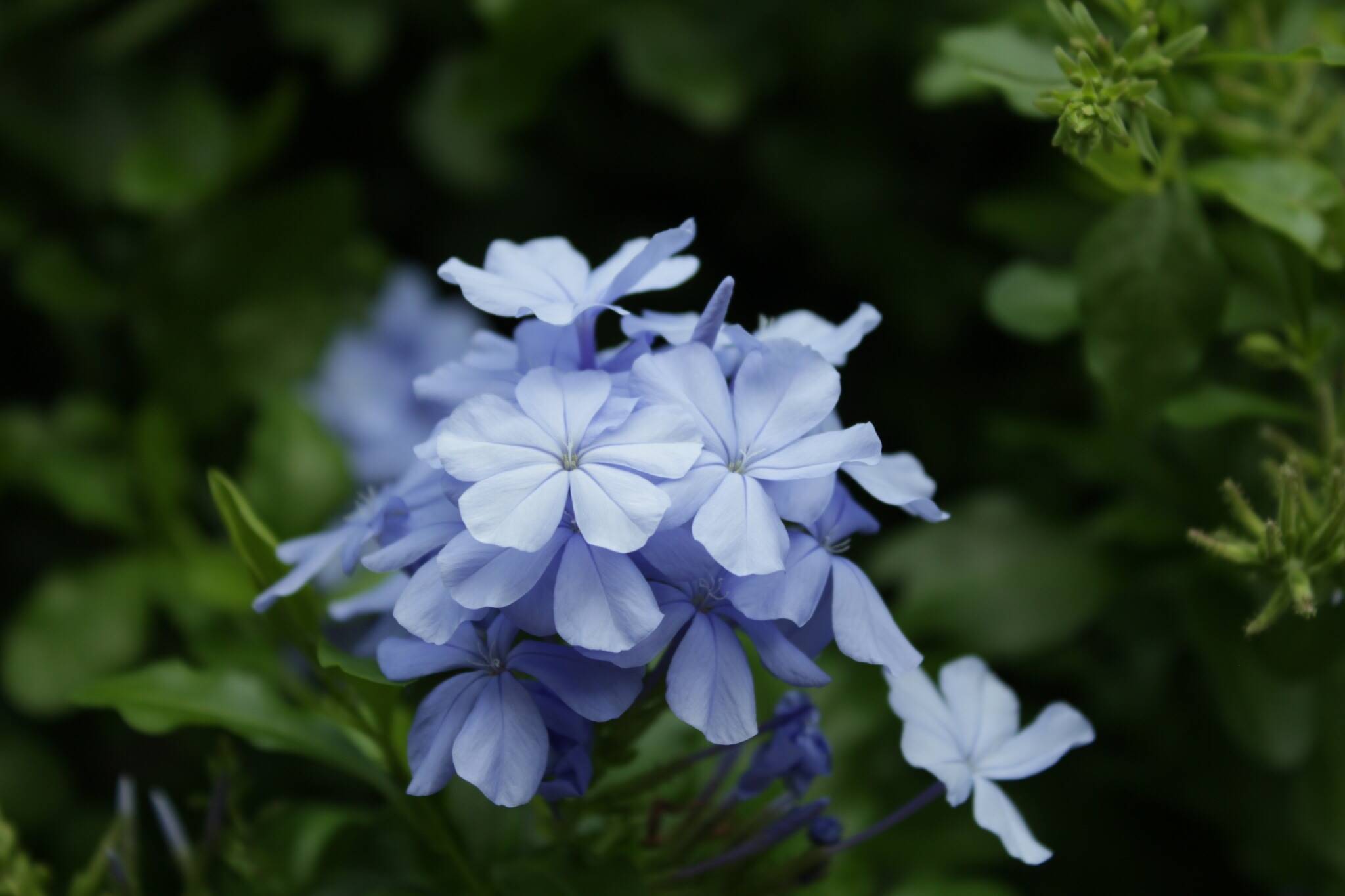 島のあちこちには花々が咲いています。それは自然の花だったり、花壇に植えられていたり、島の風景に彩りを添えています。写真は知らない花ですが、淡いブルーが周囲の深い緑、家々の濃い茶色と素敵な風景を作り出していました。