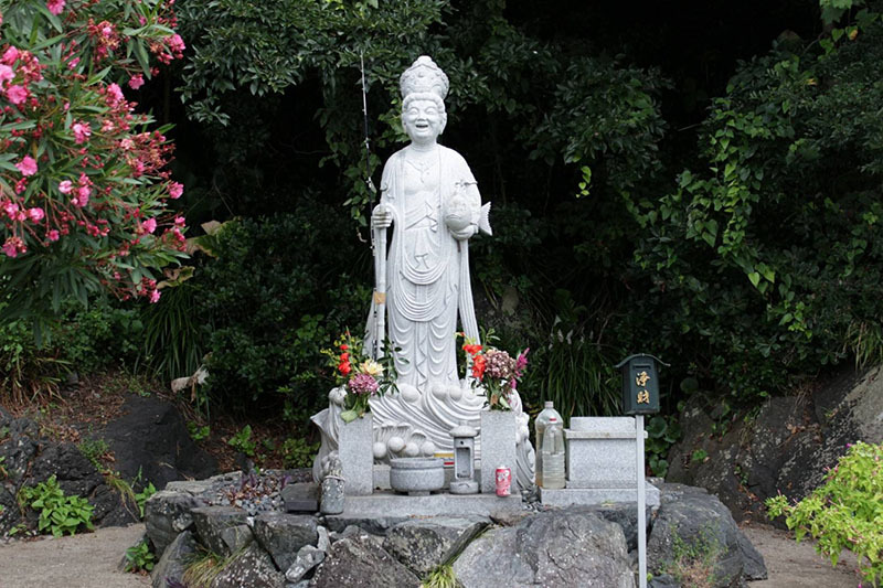 船着き場から津久美浜方面へ歩いていくと、「大笑い観音」を見ることができます。この観音様は笑い声の「ハ・ハ・ハ」の語呂合わせで平成8年8月8日に建立されました。観音様の笑顔は見る人を元気にしてくれます。