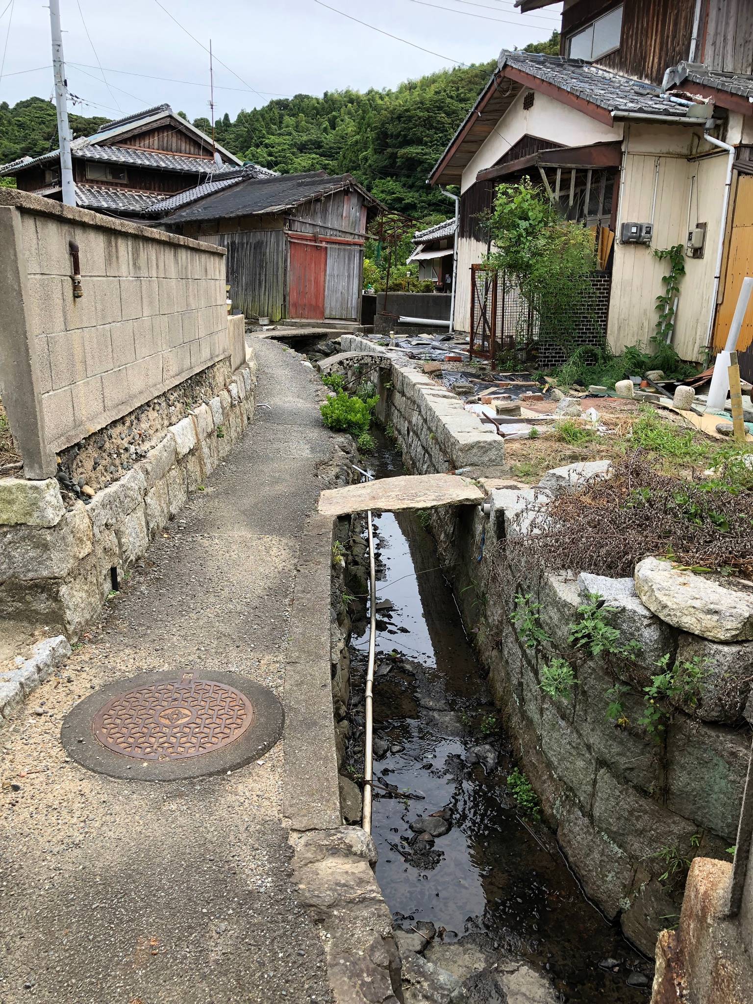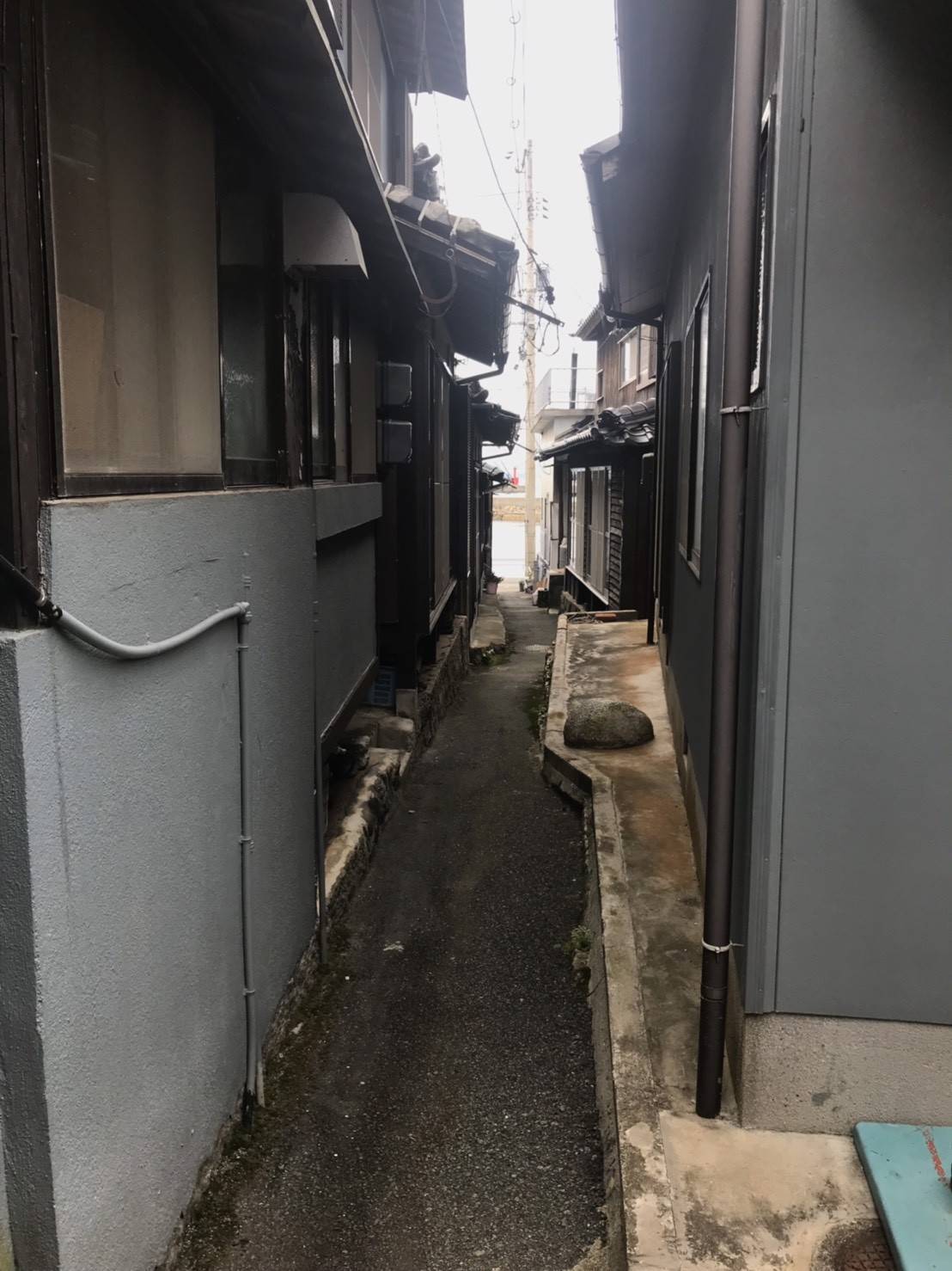 海の通りから一歩内側に入り込むと、細い路地が広がっています。昔ながらの家々がひしめき合い、路地好きにはたまらないスポットではないでしょうか。たばこ屋の看板やたばこの自販機、井戸などもあり、人々の生活に密着したそんな路地だったことを想像させてくれます。