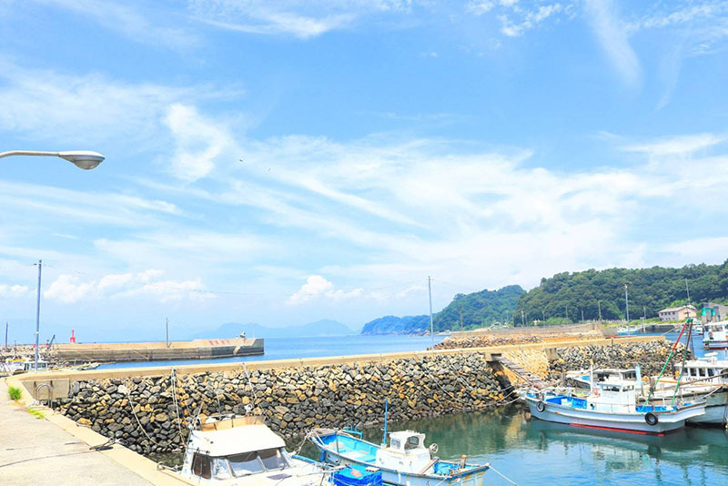 船着場に並ぶ船が、瀬戸内の穏やかな波と野島ののどかさを物語っています。広がる海と静かな港が田舎情緒を感じさせる場所です。ここへやって来た人やここから出ていく人へ想いを馳せると、野島の良さがわかってくるかもしれません。